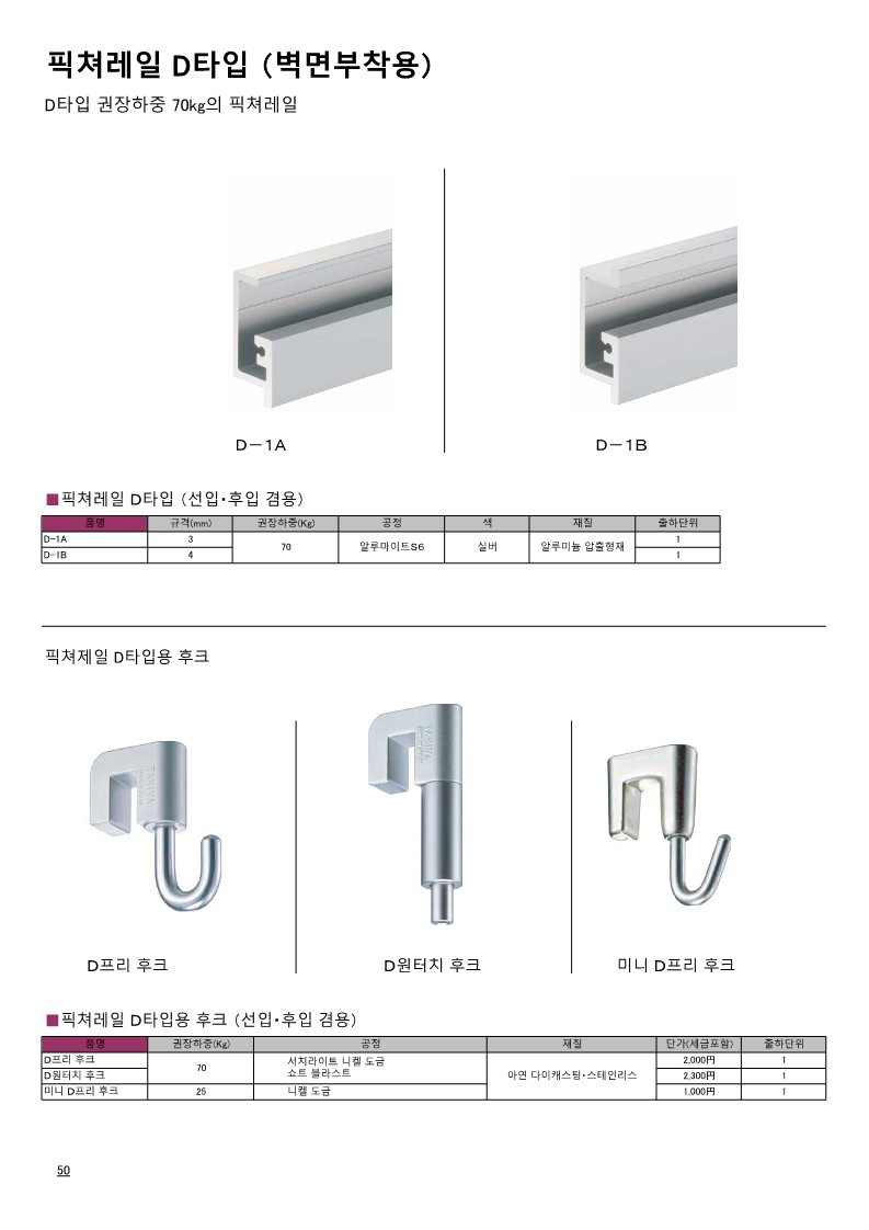행잉시스템은 전용 픽쳐 레일과 후크, 행거세트의 세 가지 요소로 구성되어 전시품을 신속, 안전하게 전시하는 시스템입니다. 후크/와이어와 행거에 의해 전시물의 이동이나 높이 조정이 가능합니다.